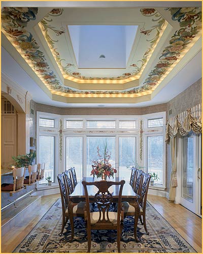 Floral Border on Two Levels of Coffered Ceiling in Dining Room |
